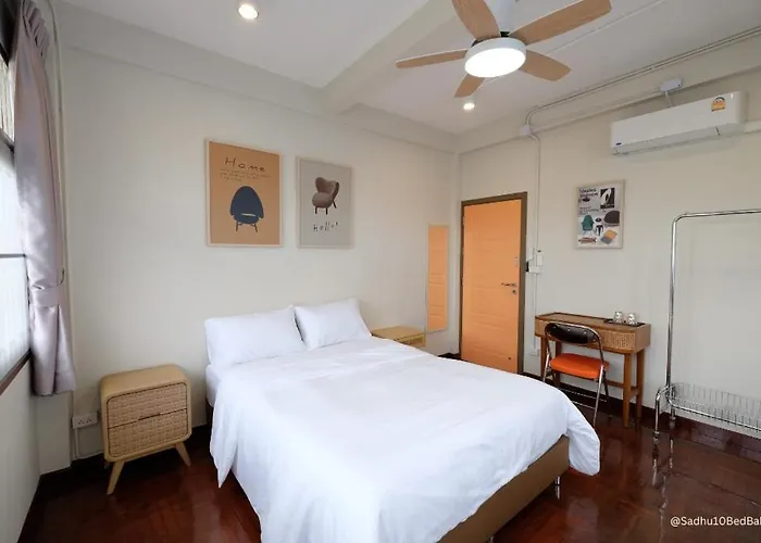 Sadhu10Bedbake Hostel Bangkok ligt binnen 5 minuten loopafstand van Bhoman Khunaram Temple en biedt een gemeenschappelijke lounge waar gasten kunnen ontspannen. Het hostel ligt in de Bangkok Central Business wijk van Bangkok en de dichtstbijzijnde bushalte, Soi Sathu Pradit 12, gelegen op 300 meter.